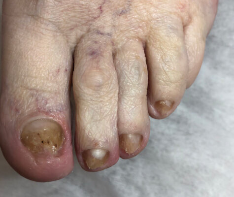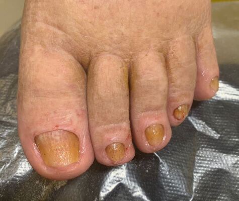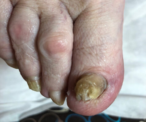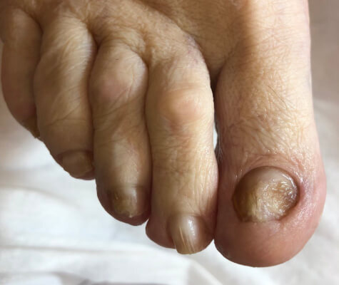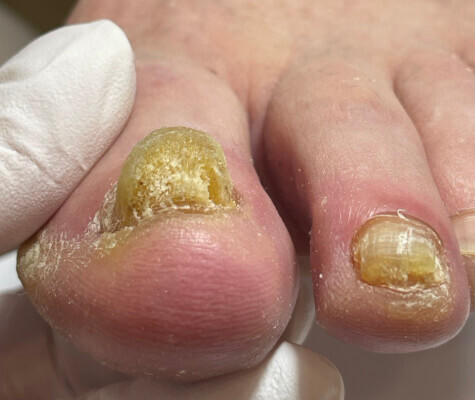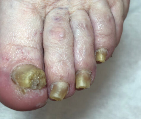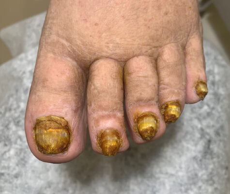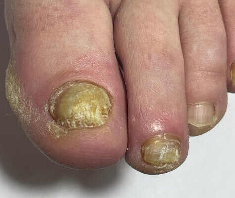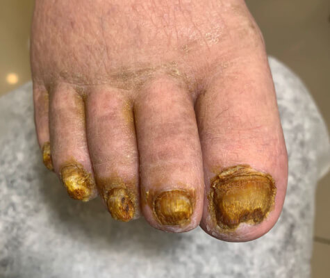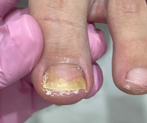 Онихомикоз (грибок ногтей) — это поражение грибковой инфекцией ногтевой пластины и окружающих её структур. Проявляется деформацией и утолщением ногтей, изменением их цвета — ногти становятся белыми или жёлтыми.