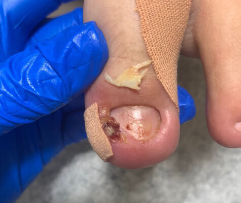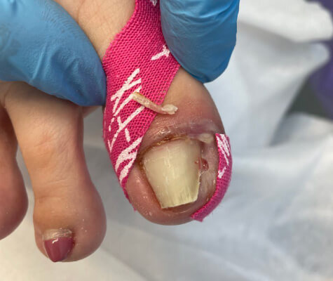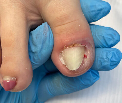 При хроническом воспалении с образованием сильной гипергрануляции или когда случай сложный, отягощенный диабетом или другими заболеваниями, рекомендовано хирургическое удаление вросшего ногтя (краевая резекция ногтевой пластины). Иногда применяют метод полного удаления ногтевой пластины.