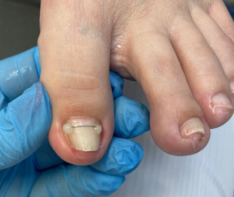 Например, онихомикоз, деформированные ногти, онихолизис, диабетическая стопа, Установка коррекционных систем