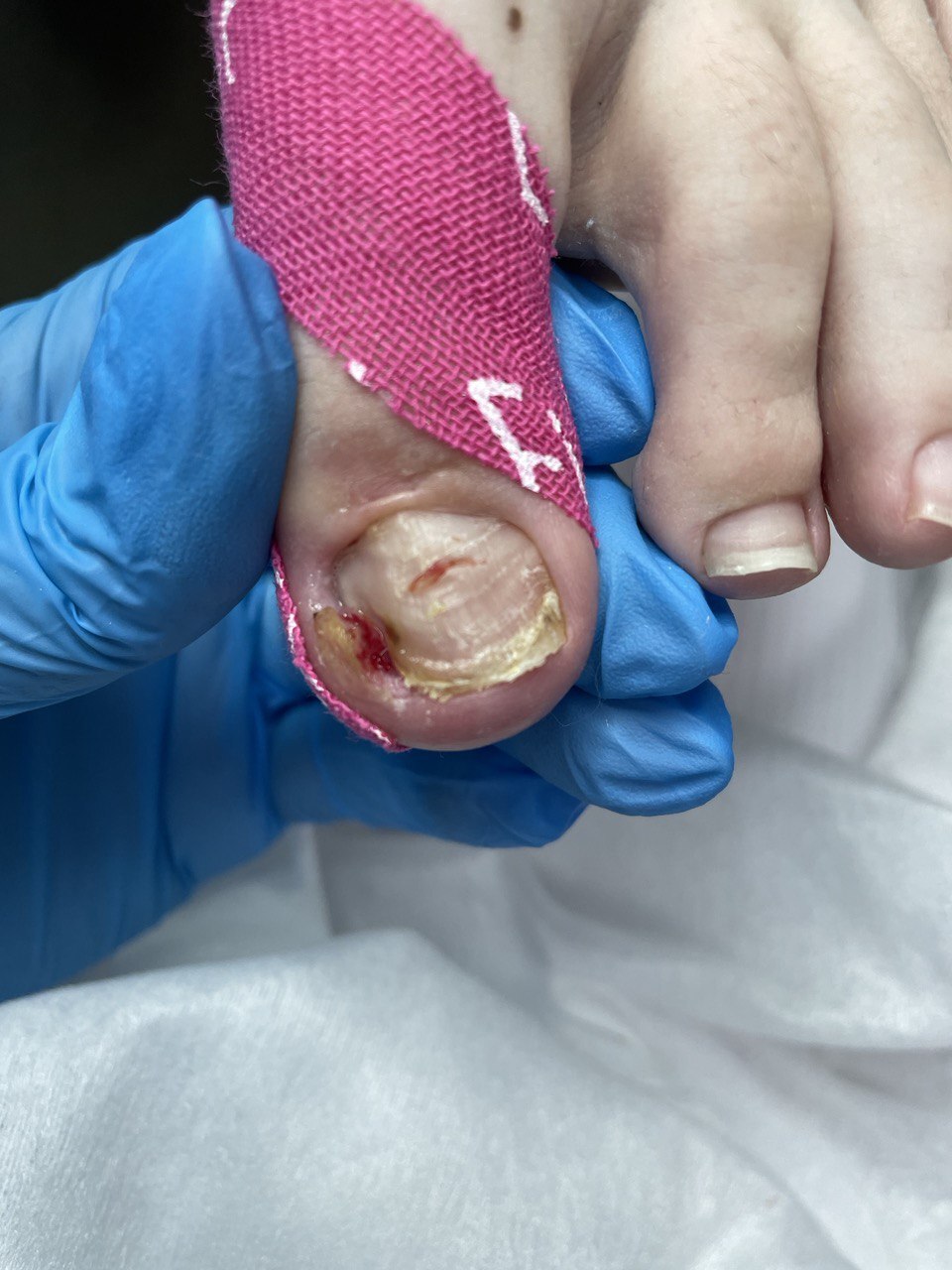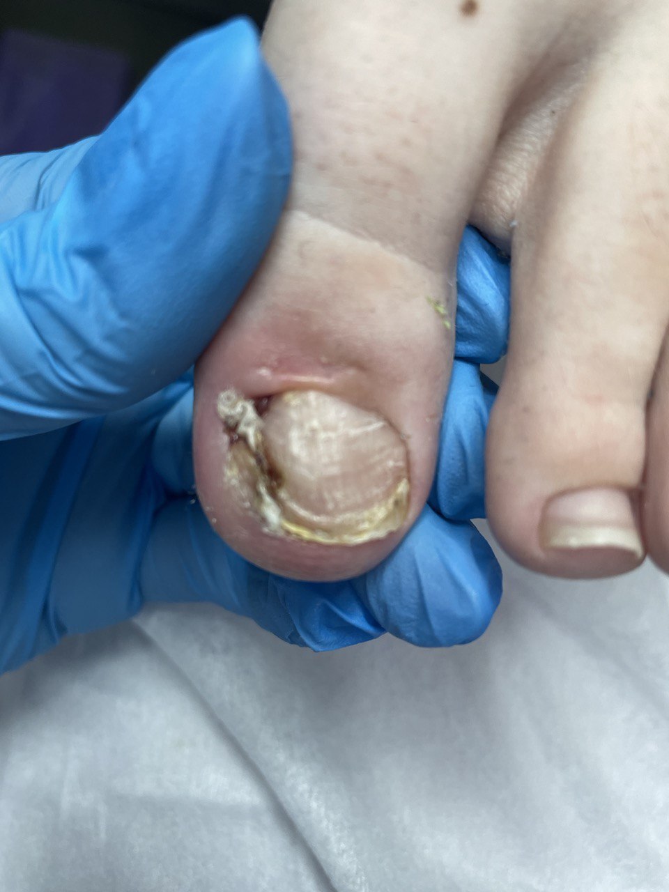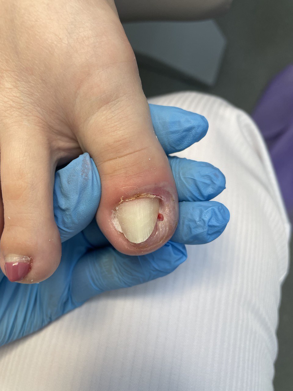 Проявляется врастанием ногтевой пластины в боковой или дистальный ногтевой валик, что сопровождается отеком и воспалением мягких тканей, выраженным болевым синдромом, нередко образованием гноя