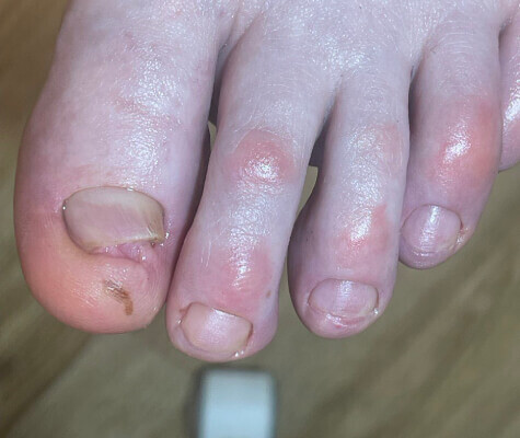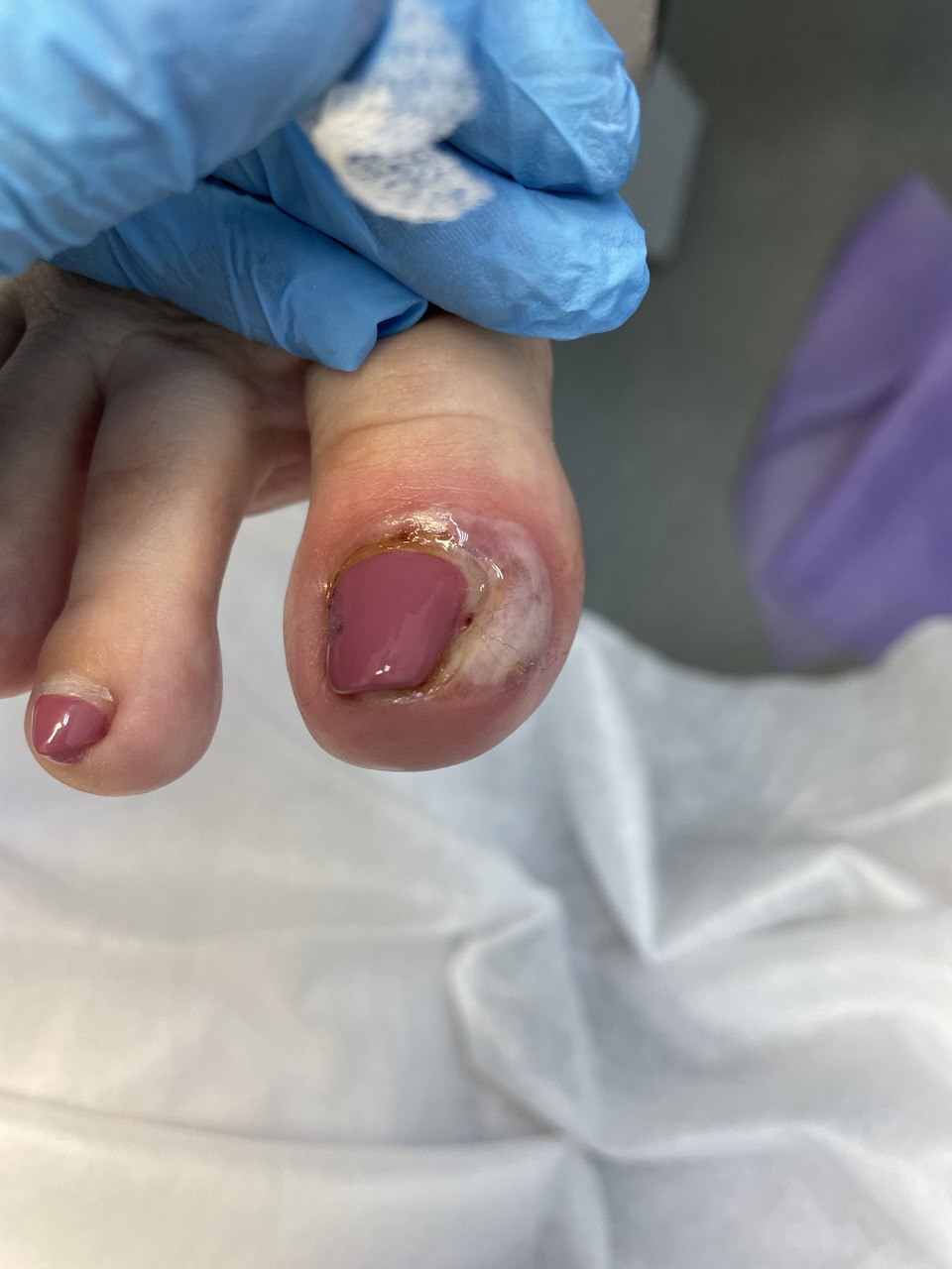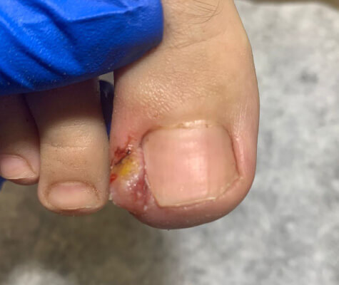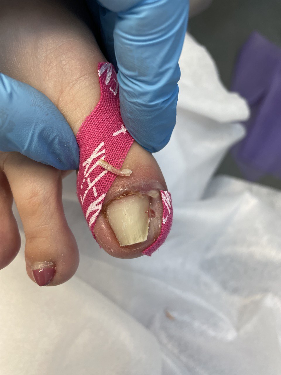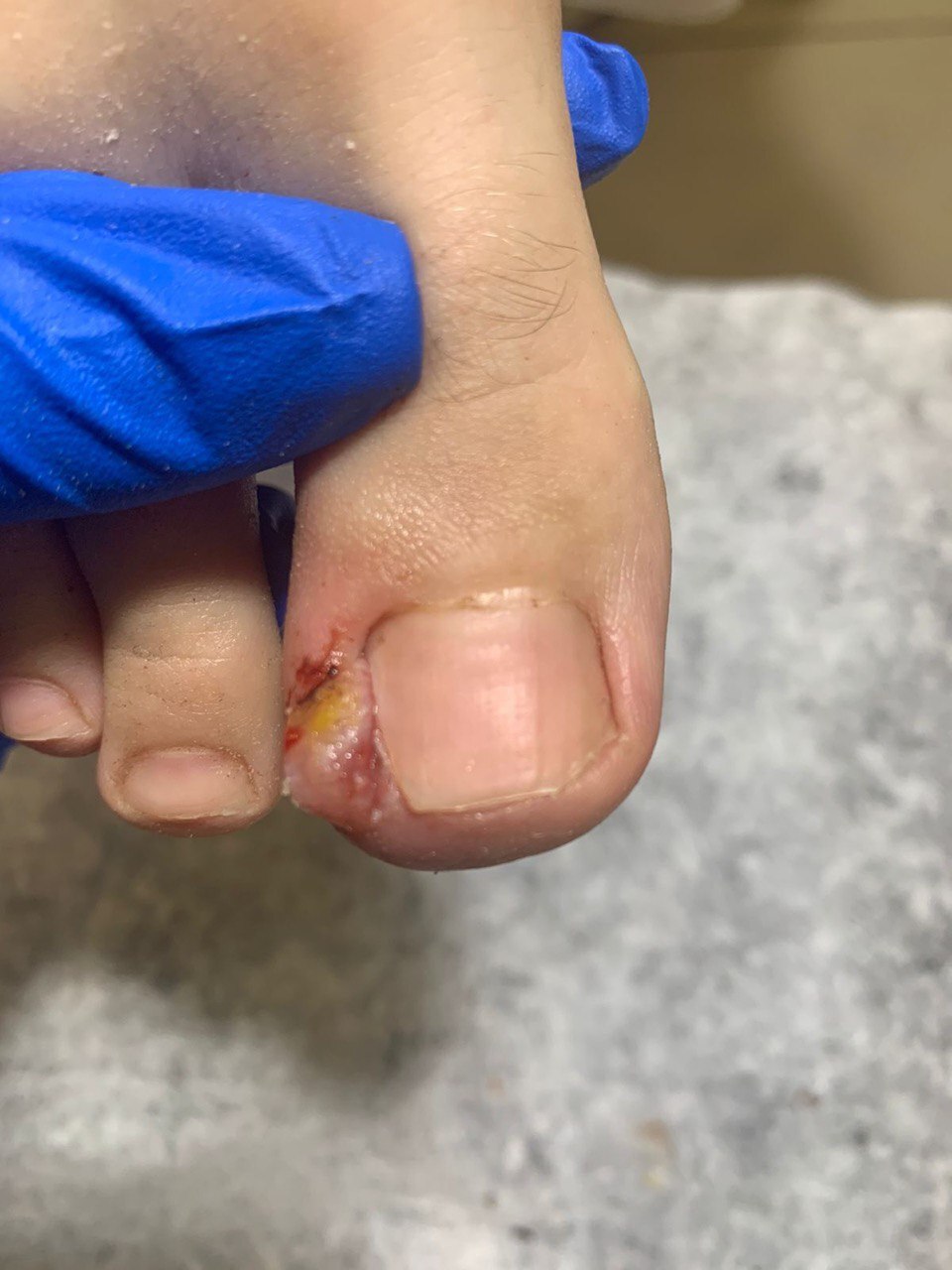 Проявляется врастанием ногтевой пластины в боковой или дистальный ногтевой валик, что сопровождается отеком и воспалением мягких тканей, выраженным болевым синдромом, нередко образованием гноя