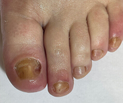 Изменение цвета, врастание или расслаивание ногтевой пластины