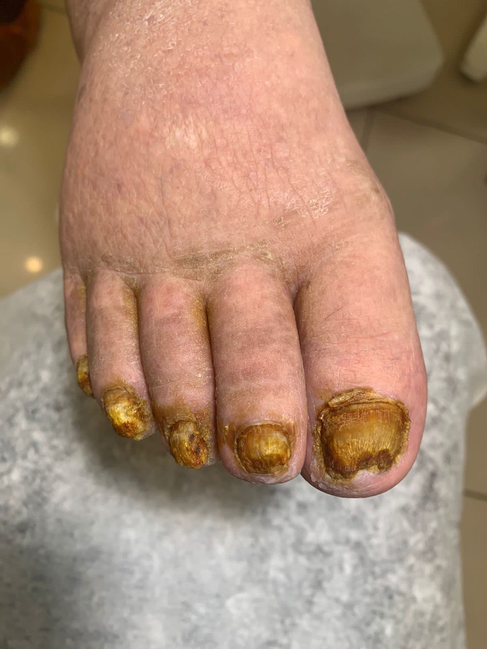 медицинский педикюр 3 степени. Произведена зачистка и назначены препараты для домашнего использования, согласно рекомендациям дерматолога