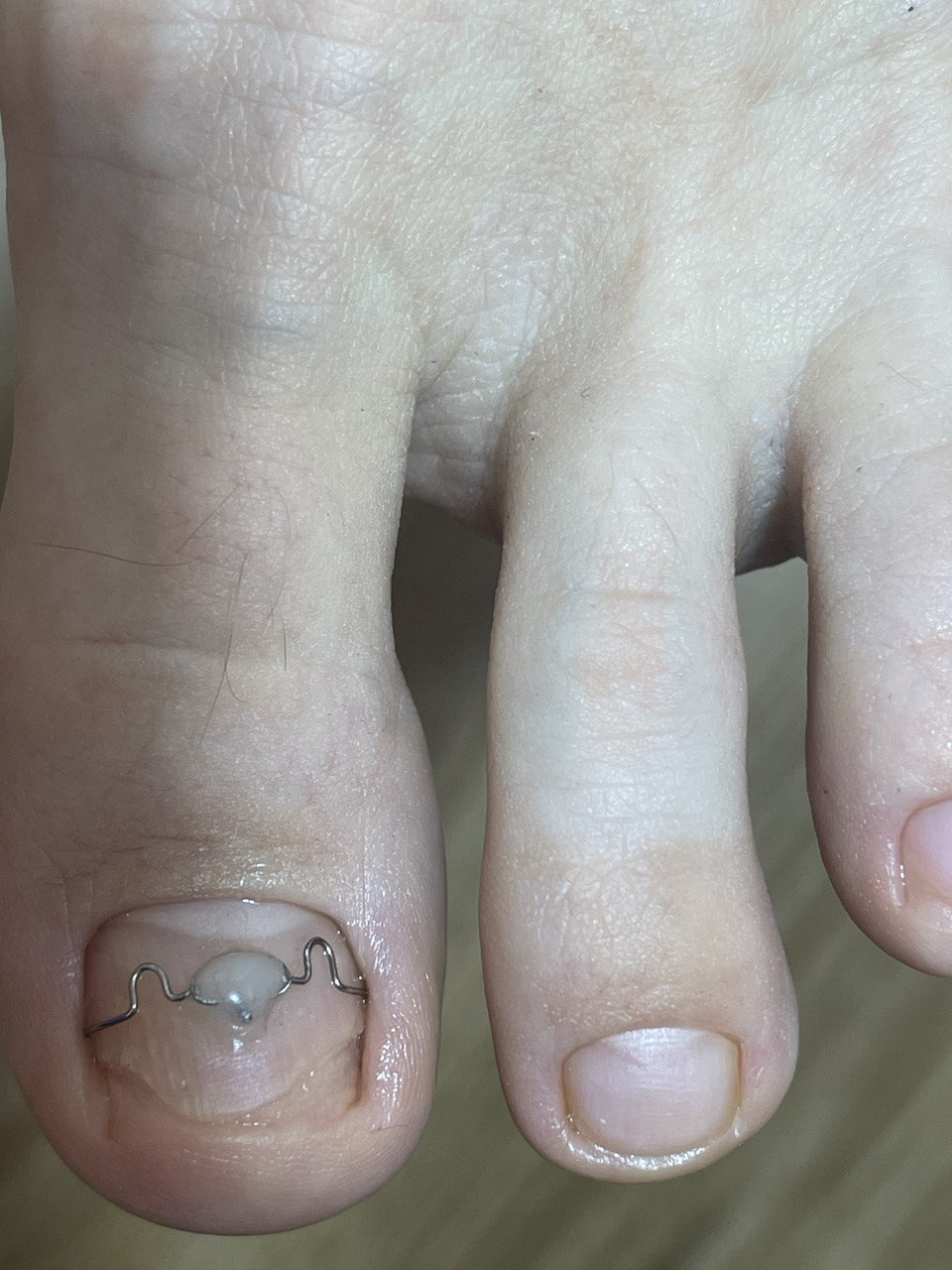 Эффективным малоинвазивным методом борьбы с вросшим ногтем считается использование скоб и пластин, которые безболезненно для пациента устанавливаются на ногтевую пластину. Применение в лечении ортониксических систем позволяет скорректировать направление роста ногтя, тем самым купировав врастание. Корректирующие пластины подбираются каждому пациенту строго в индивидуальном порядке с учетом особенностей деформации ногтевой пластины