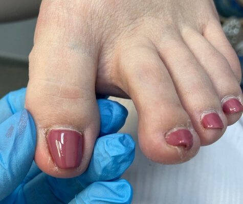 Если вы при вросших ногтях продолжаете покрывать ногти гель-лаком, то только усугубляете проблему. Под гель-лаком ноготь деформируется и скручивается, что вновь приводит к врастанию ногтей.